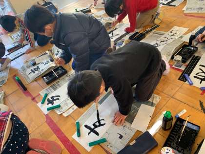 初めての画仙紙で字の大きさや,バランスに気をつけながら書きました!