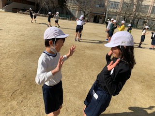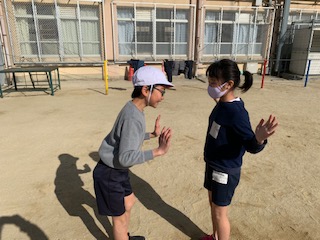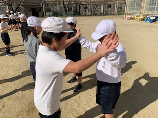 そこで,四股を踏んだ後,手押しずもうをしました。