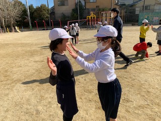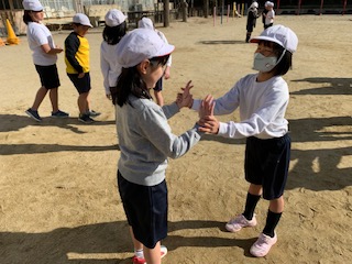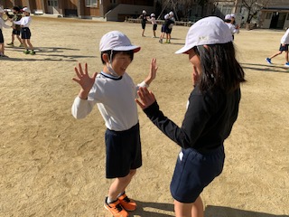 そこで,四股を踏んだ後,手押しずもうをしました。