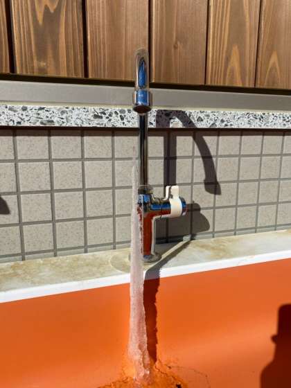 少しぽたぽたしていた水道から…。自然の不思議を目の当たりにした,寒風吹きすさぶグラウンドでした。