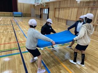 新しくなった体育館でわくわくしながらの学習です。