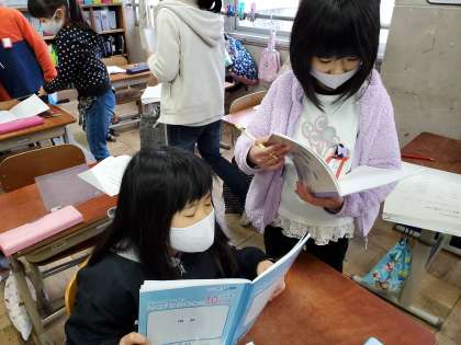 今日は自分が作った詩を友だちと交流し合いました。「なるほど!そういう工夫もできるね!」「この詩とっても面白いね!」と,お互いに感想を言い合う子どもたちの姿を見ることができました。