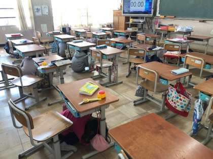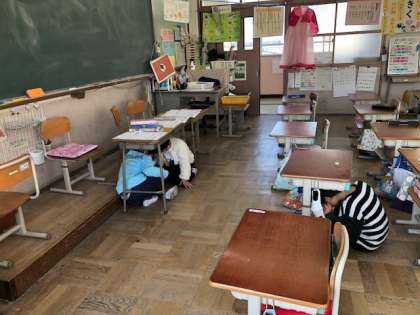 教室組は,机の下に入り静かに放送を聞くことができました。