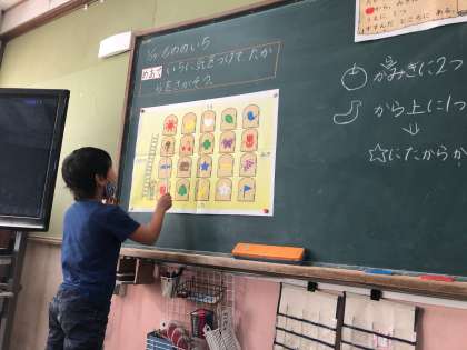 どこのドアの中に宝が隠れているのか,一生懸命に挑戦状を読み解いていました。