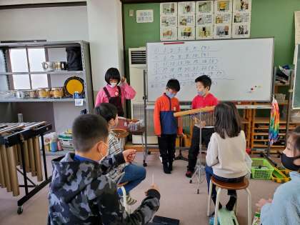 今日は音楽室に行き,音楽の授業を受けました。色々な楽器を使い,「まほうの音楽」を入れながら歌いました。それぞれ素敵な「まほうの音楽」を奏でることができました(*^^*)