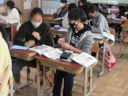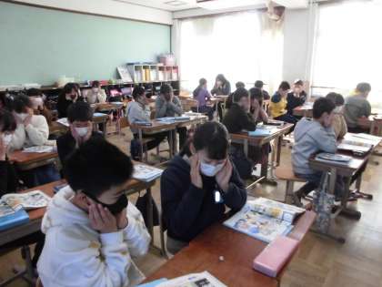 外国語の時間です。新しい単元で習う単語に慣れるためにキーワードゲームをしました。もちろんソーシャルディスタンスを意識して5分以内で終わりました。その分,スピーディーで大盛り上がりでした♪