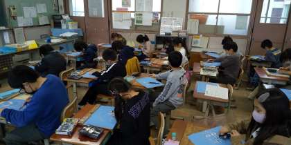 初めての彫刻刀に恐る恐る取り組んでいた子どもたちですが,