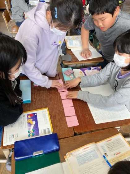 1・2・3・4・5・6と書かれた6まいのカードをならべて6けたの数を作ります。
