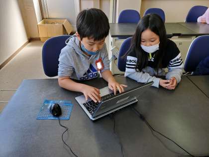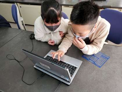 今日はパソコンルームに行って,パソコンの使い方を学習しました。また,タイピングの練習も行いました。「難しいけど,楽しい〜!!」と,子どもたちは楽しみながら学習していました。