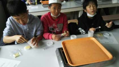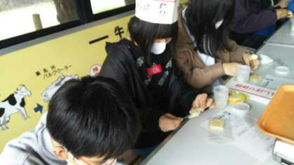 バター作りが終了しました!作ったバターをクラッカーにつけて食べました!
