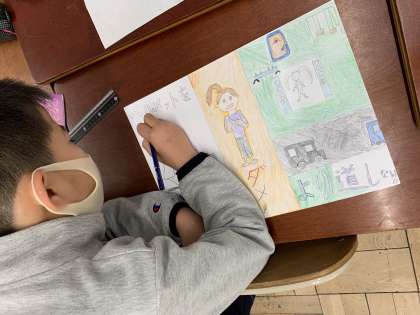 社会科の学習で「事故や事件をふせぐ」の学習をしました。自分たちでできることはないか考え,事故や事件をふせぐためのポスターを作ることになりました!「遠くからでも見えるポスターにするにはどんな色を使えばいいかな」「文字の大きさにも工夫しよう」とグループで考え,取り組みました!!