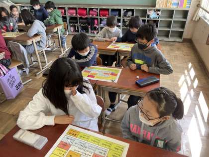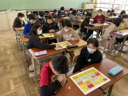 学級開きでは,すごろくトークをしました。サイコロを振って出た目の分だけマス目を進んで…マス目に書かれたお題についてお互いに話をしました。
