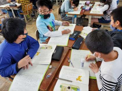 今日はグループで,登場人物の心情が分かる文章を教科書から見つけて,読み取れる心情について話し合いました。どのグループも活発に意見を出し合うことができていました♪