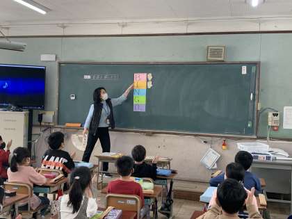 4年生になって初めての音楽科の授業がありました♪4年生は秋國先生と一緒に学習します。リズムに合わせて手拍子!とても楽しんでいました!