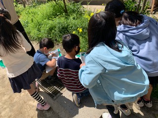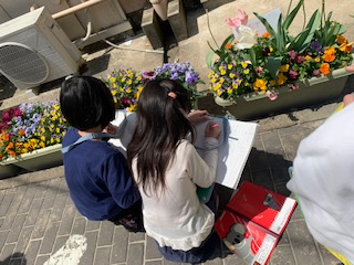 国語科「春がいっぱい」の学習で,教室から出ていろいろな「春」を探しに行きました。