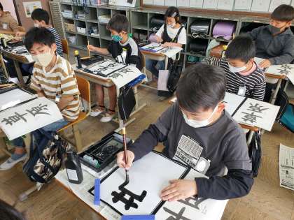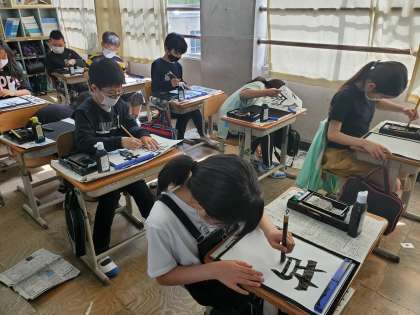 中と外の組み立てに気をつけながら「草原」を書きました。文字を綺麗に書くポイントを意識しながら,集中して書くことができていました。