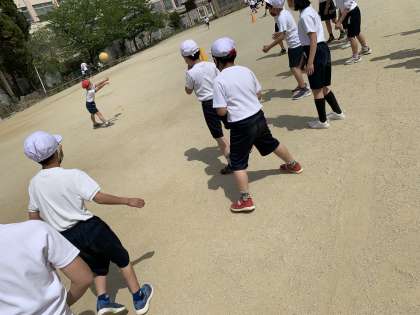 ドッチボール大では,友だちを守ったり積極的にボールに向かう姿が見られました。