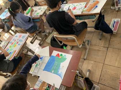 4年生になって初めての図画工作科の授業がありました!誰も見たことのない世界に一つだけの花を想像し,表し方を工夫しました。絵の具やコンテなどをつかって,自分が想像した花の形や色に合うよう細かいところまでこだわり書くことができました(^^)