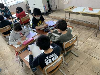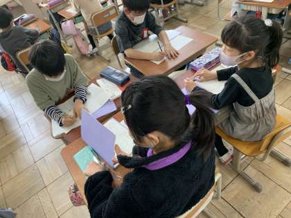 国語科では「白いぼうし」の学習をしています。「白いぼうし」を読んで考えたこと,思ったことについてグループで交流しました!授業で話し合った「問い」についてもいろいろな考え方があることに気付きました。