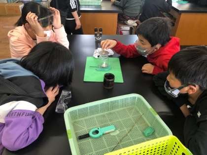 ものが燃えるにはどんな気体が必要なのかな…?火の燃え方やけむりの動きに注目していました。