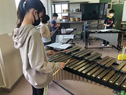 今日は木琴や鉄琴を使って演奏しました。鍵盤ハーモニカやリコーダー以外の楽器を久しぶりに使って,楽しく活動していました。