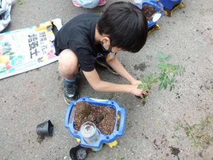 ほかに,プランターにナス・ピーマン・オクラの苗も植えました。