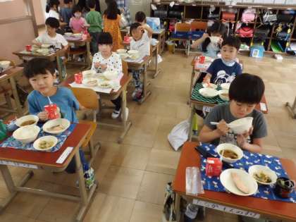 給食もりもり食べる1年生!!