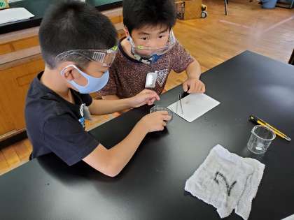 今日の理科の学習では,種子に養分がふくまれているかどうかを調べました。実験をする,ということで子どもたちはワクワク・・・楽しみながら実験をしていました。ヨウ素液を使いながら実験し,種子には発芽に必要なデンプンとよばれる養分が入っていることを知ることができました。