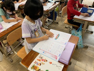 書写の学習で「かたかな」について画の方向に気を付けて書きました。