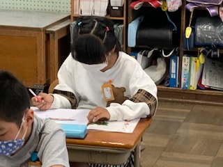 1年生の時学習したかたかなですが,改めて点の向きやはらう方向を考えて丁寧に書きました。