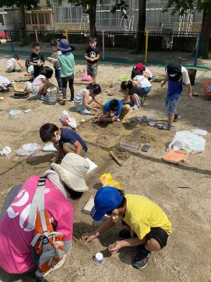 運動場の砂場ですなあそびをしました!