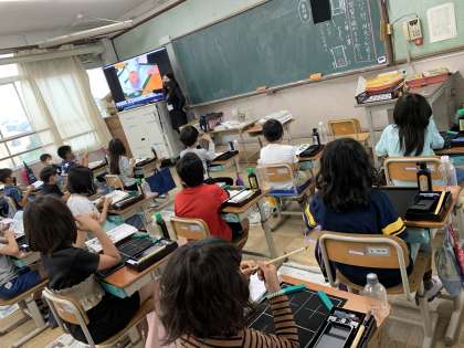 三年生になって初めての書写の学習です。習字セットを使って毛筆の学習が始まりました。道具の名前や置き方などたくさん覚えることがありましたね。それでも積極的に楽しく学んでいる姿が見られました。これから色々な字をみんなで書いていきましょう