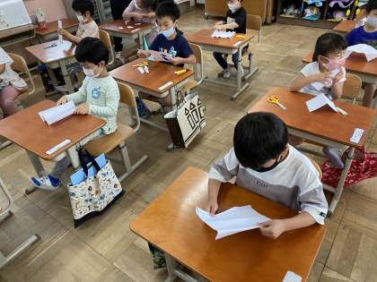 図画工作「おって たてたら」の学習では,どんなまちを作るかグループで話し合いました。「動物や魚がいっぱいいるまち」「宇宙みたいなまち」などおもしろい意見がいっぱいでました☆テーマを決めた後,画用紙を折って立てる練習をしました!次の時間が楽しみ☆