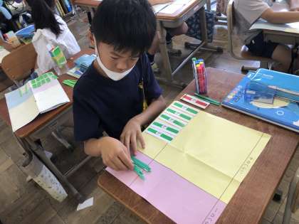 数え棒を動かしながら一生懸命考えています。