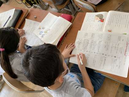 りいこはこの場面の時にどのようなことを考えていたのかを,文章から読み取れる言葉を抜き出したり,挿絵の表情を見ながら考えていました。以前に学習した,擬人法や比喩表現なども気を付けながら自分なりにまとめていました。