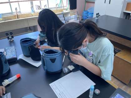 メダカの卵を顕微鏡をつかい,観察しました。