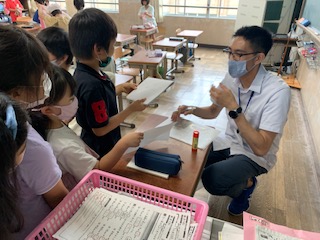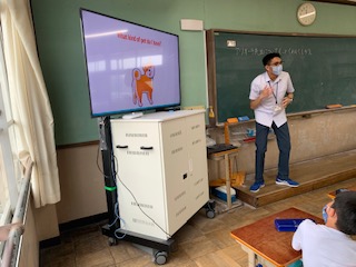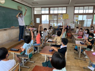英語活動で,アリオーラ先生と一緒に学習しました。