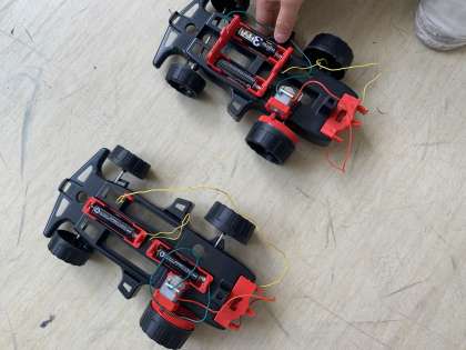 車輪にギアを取り付けて,走らせました(^^)
