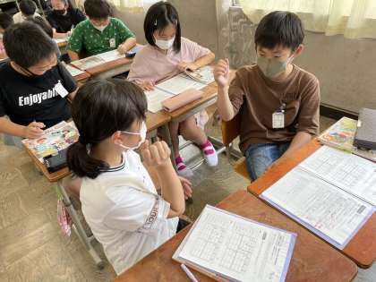 外国語科「When is your birthday?」の学習で,コネクト3をしました。先か後かを決めるじゃんけんから白熱しました。