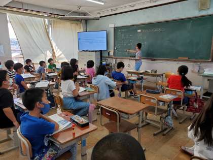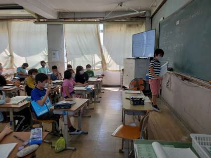 この日は,「96÷2.4」が正しいと思う理由を,皆で考えました。それぞれ図をかいたり,言葉の式にあてはめて考えたりしていました。