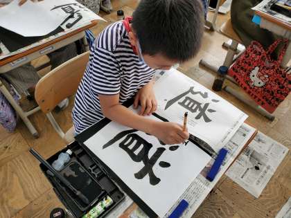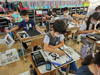 今回の書写の学習では,中と外の組み立てを意識して,穂先の動きに気をつけながら「道」を書きました。それぞれ集中しながら書くことができていました♪