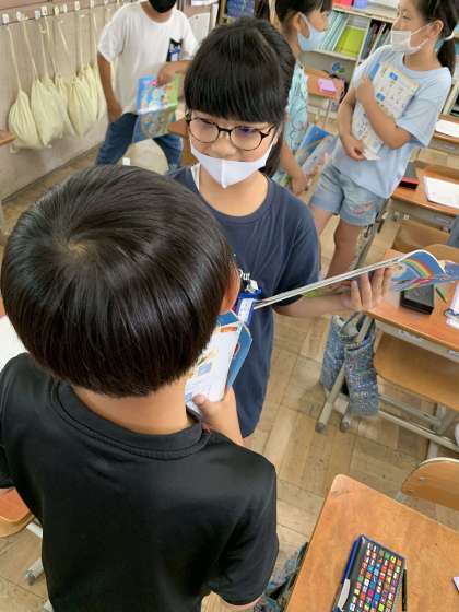 自分の好きなもの,苦手なものを英語で伝えたり,相手に尋ねたりすることができました。友だちの英語を必死に聞いている姿や,予想して考えてから英語での会話を楽しんでいる姿が見られました。
