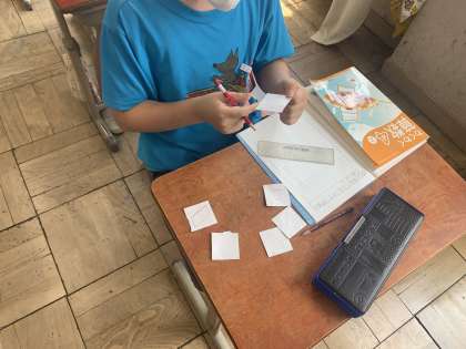 算数では「垂直と平行」の学習をしています!今日は辺の平行に目をつけて、四角形をしらべました。どこが平行になるか考えたり、書いた四角形をグループ分けしました!また、身近な台形や平行四辺形も見つけました!