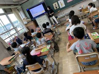「トゥートゥー」と言いながら,リズムに合わせて息の量を変える練習もしました。