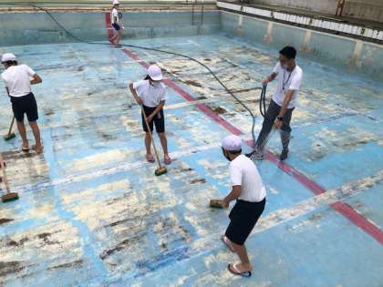 プール学習のためにプールを掃除しました!