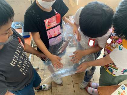 閉じ込めた空気の学習が始まりました!閉じ込めた空気に力を加えると体積や手応えはどうか考えました!加える力の大きさをどんどん大きくしていくにつれて、体積や手応えはどうなっていくのか実験で確かめました!これからの学習が楽しみですね!