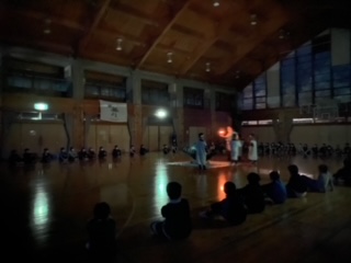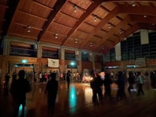 うすぐら〜い中での神聖な儀式…。盛り上がりつつ,山の家の大切な思い出の一つとなったはずです。