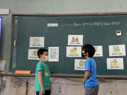 自分の好きな時間や日課を工夫して、友達に伝えました!友達と話し合う中で、質問し合ったり、教え合う姿がたくさん見られました!