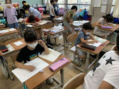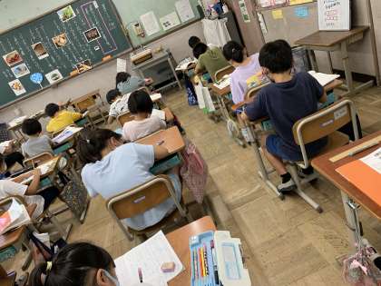 風鈴や,夏休み,スイカ,海,花火…たくさんの「夏」を見つけることができていました。花火の詩を読んでみたり,夏に関するカードを書いたりして,夏を想像させる言葉を考えていました。