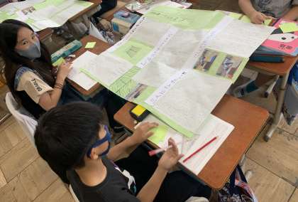 班ごとにわりつけの工夫がされていたり,内容も違っていたので,「校長先生に話を聞きにいったの!」と驚きもたくさんでした。